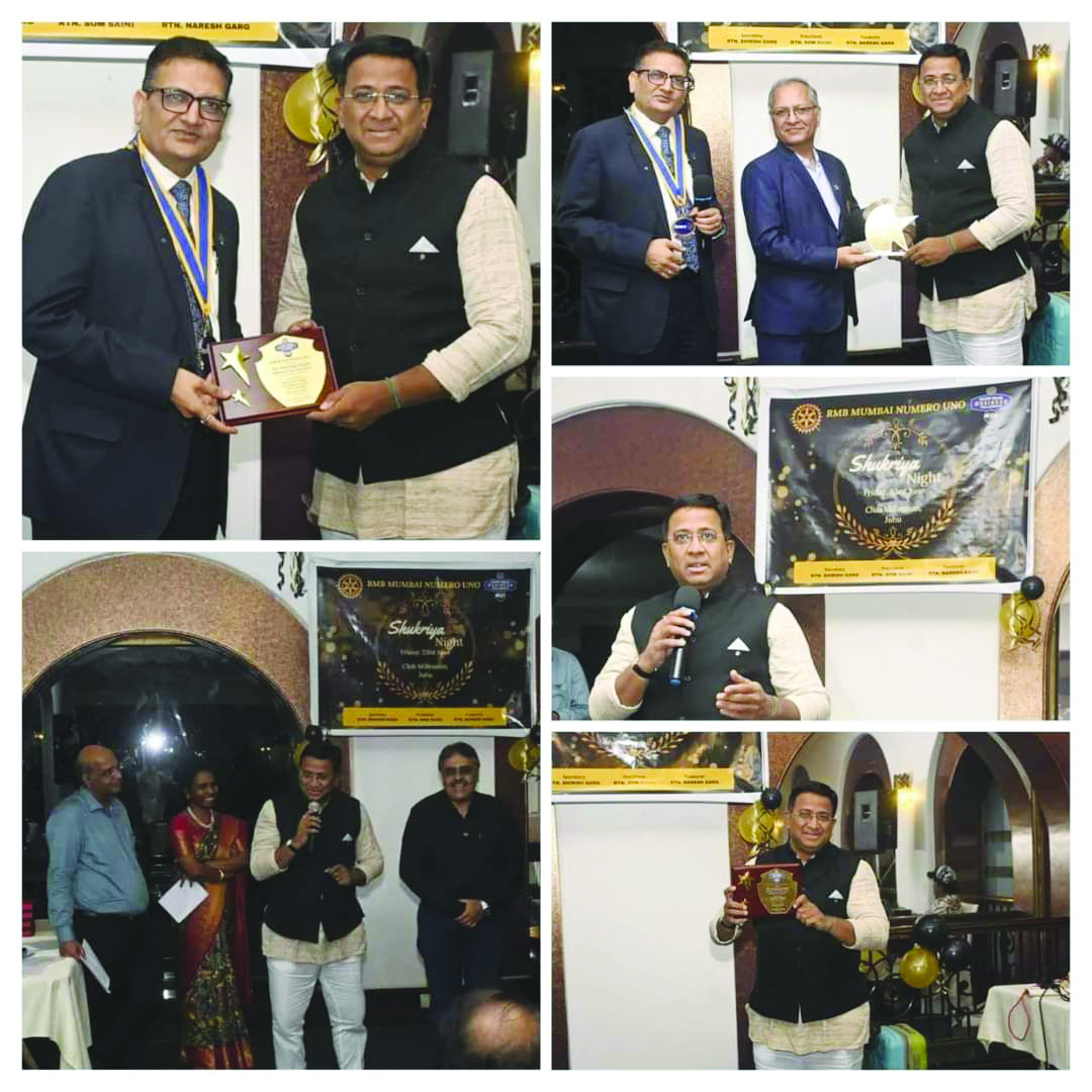 He was appointed as the President of the Rotary Club of Mumbai Seacoast in the year 2014-15 under the District Governor Ajay Gupta. He won the Platinum Award for his club in that year and it was a major achievement as he was selected from 160 presidents.