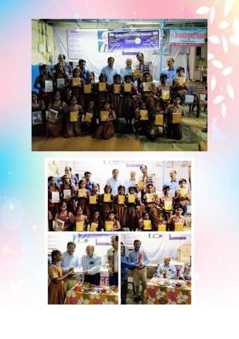 Giving notebook to children at community school where very poor and underprivileged children come to studied at L.P Jagdale school, Malad