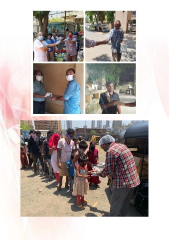 Providing sanitiser bottle to local people and vendor for their safety at vile parle Providing "Grain kit" to migrant labour camp at Malad and also giving chocolate