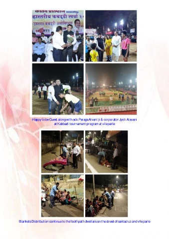 Happy to be Guest along with adv.Paraga Alvani ji & corporator Jyoti Alavani at Kabbadi tournament program at vile parle Blankets Distribution continue to the foothpath dwellars on the street of santacruz and vile parle